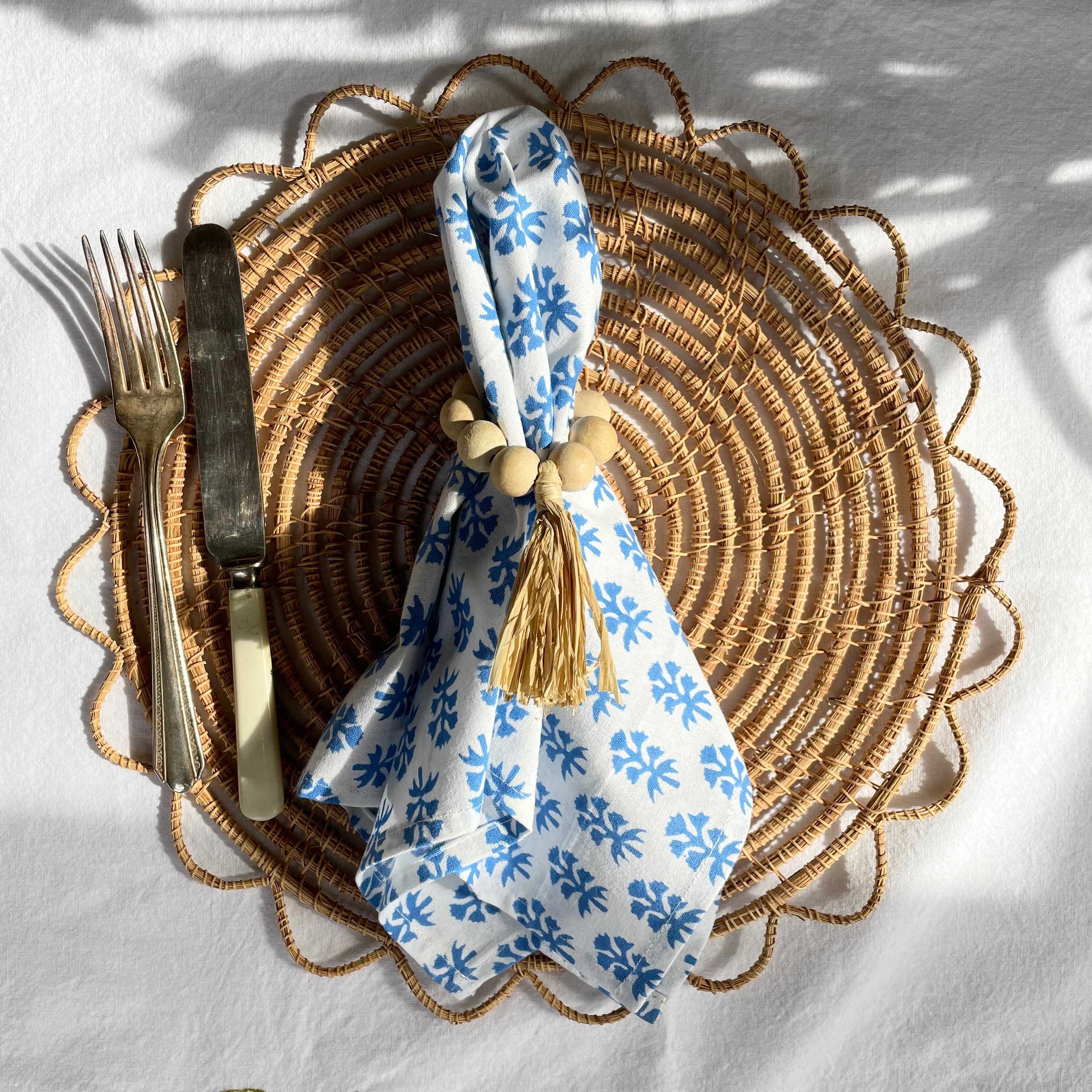 Wooden Beaded Tassle Napkin Rings