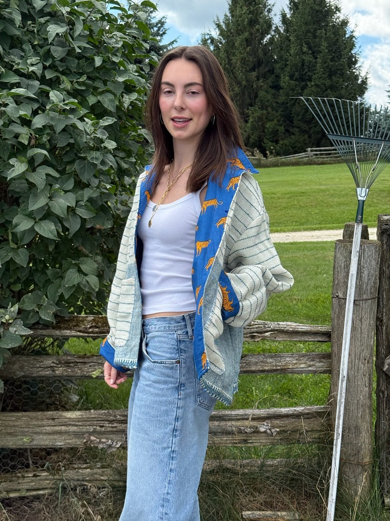 Lined with handblocked tiger print cotton this piece is truly unique.
