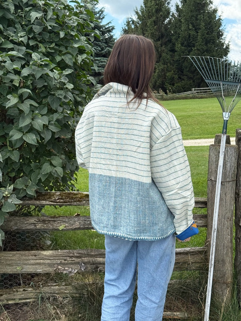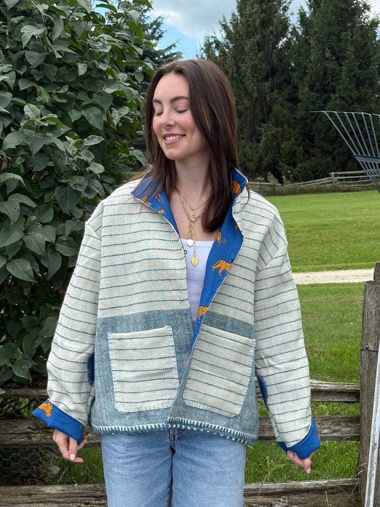 Designed by 2DA, made in India. Handloomed wool throw transformed into a one-of-a-kind heirloom jacket.