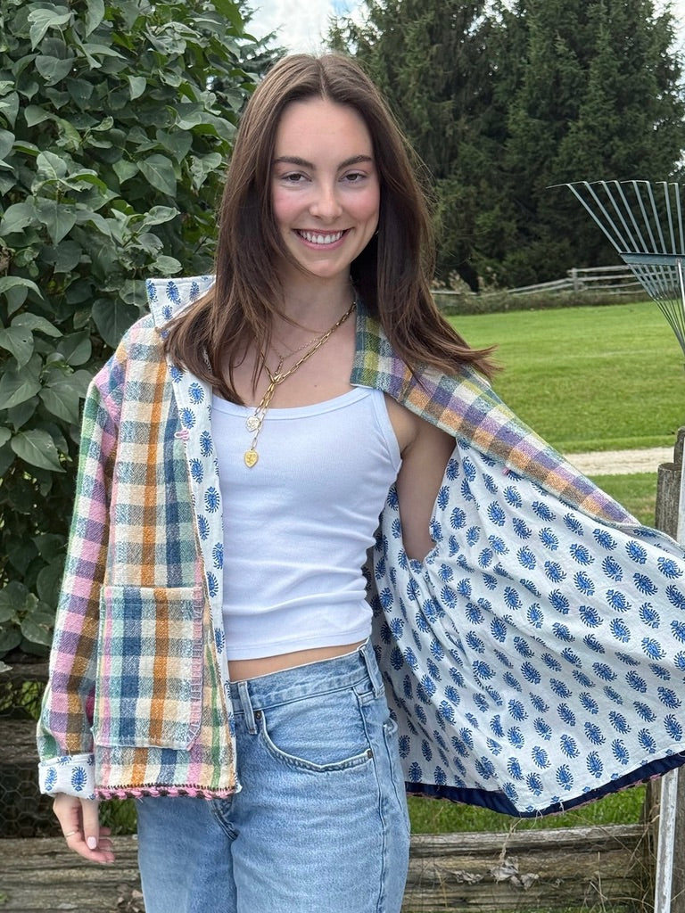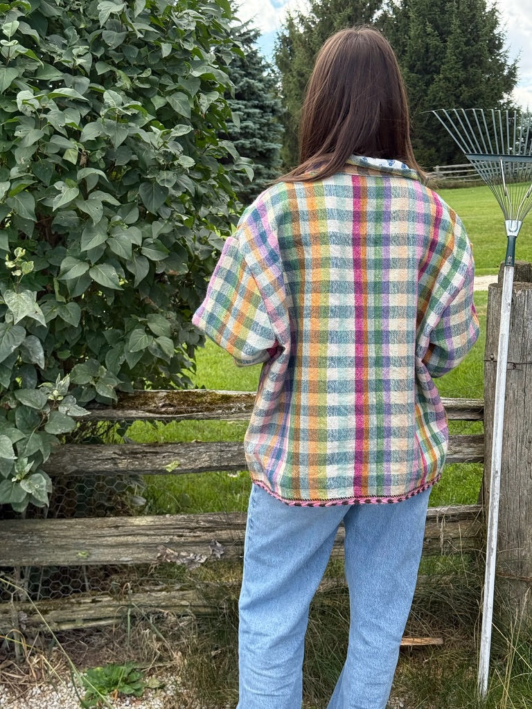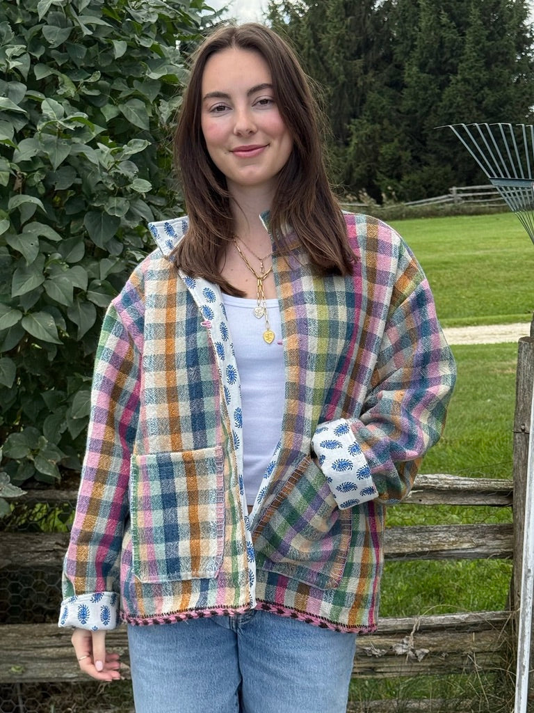 Designed by 2DA, made in India. Handloomed wool throw transformed into a one-of-a-kind heirloom jacket.