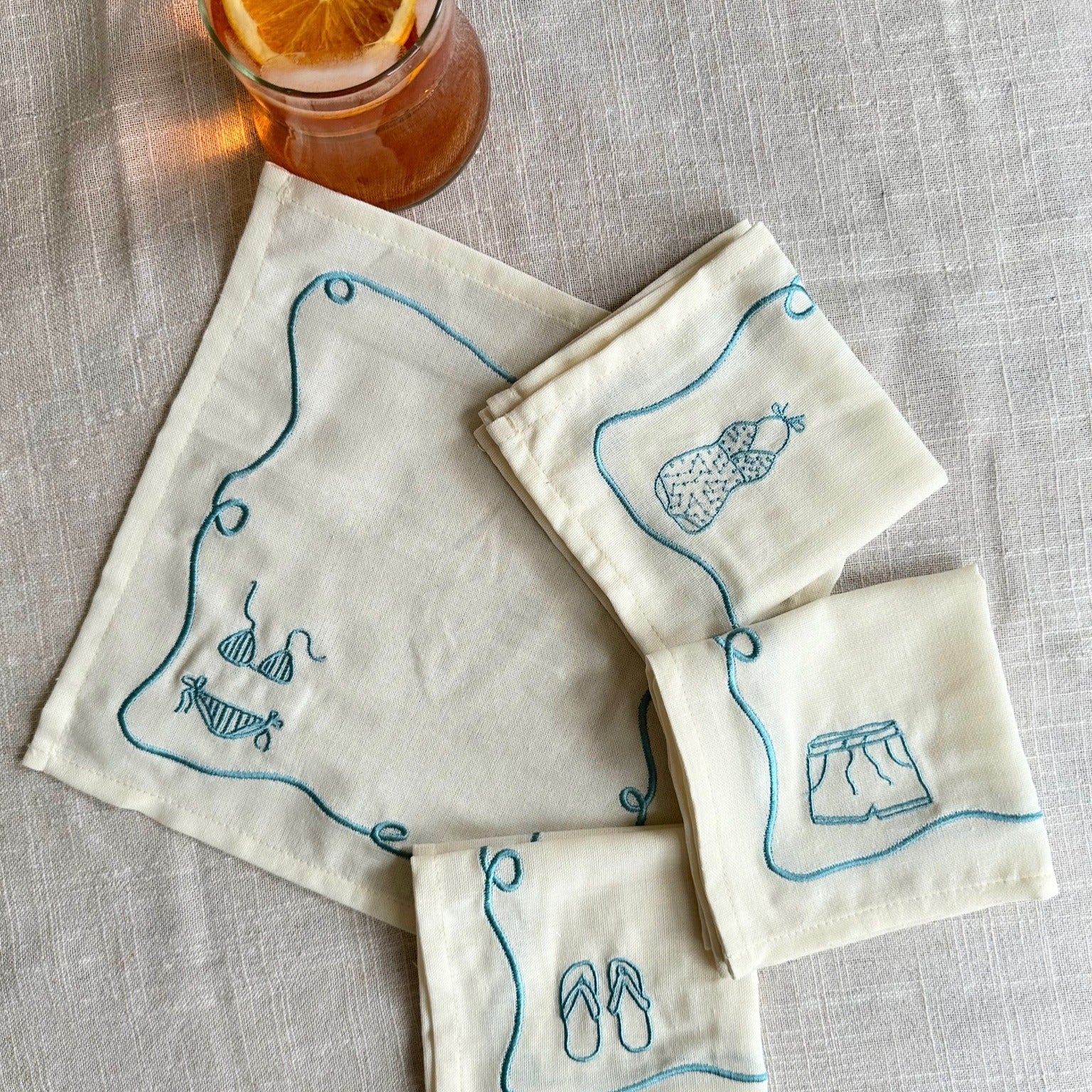 Bathers Embroidered Cocktail Napkin Set