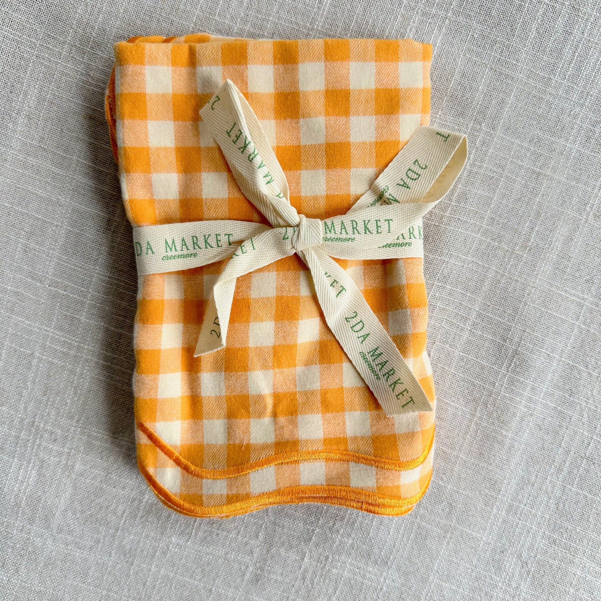 Set of 4 gingham and embroidered scalloped- oh boy!