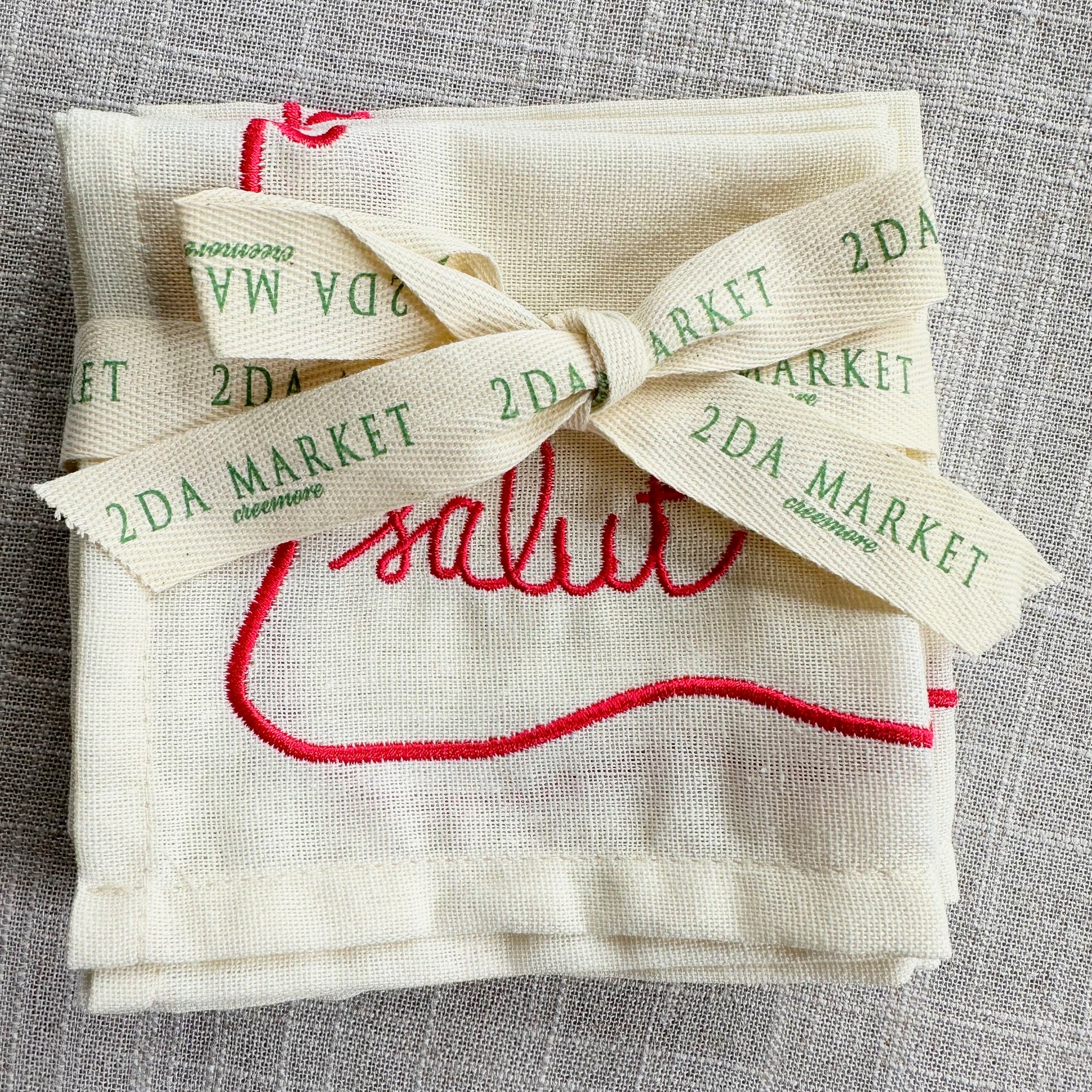Drawn and designed by us, these are the cutest embroidered napkins! Use them at your next cocktail party. They also make the perfect hostess gift.