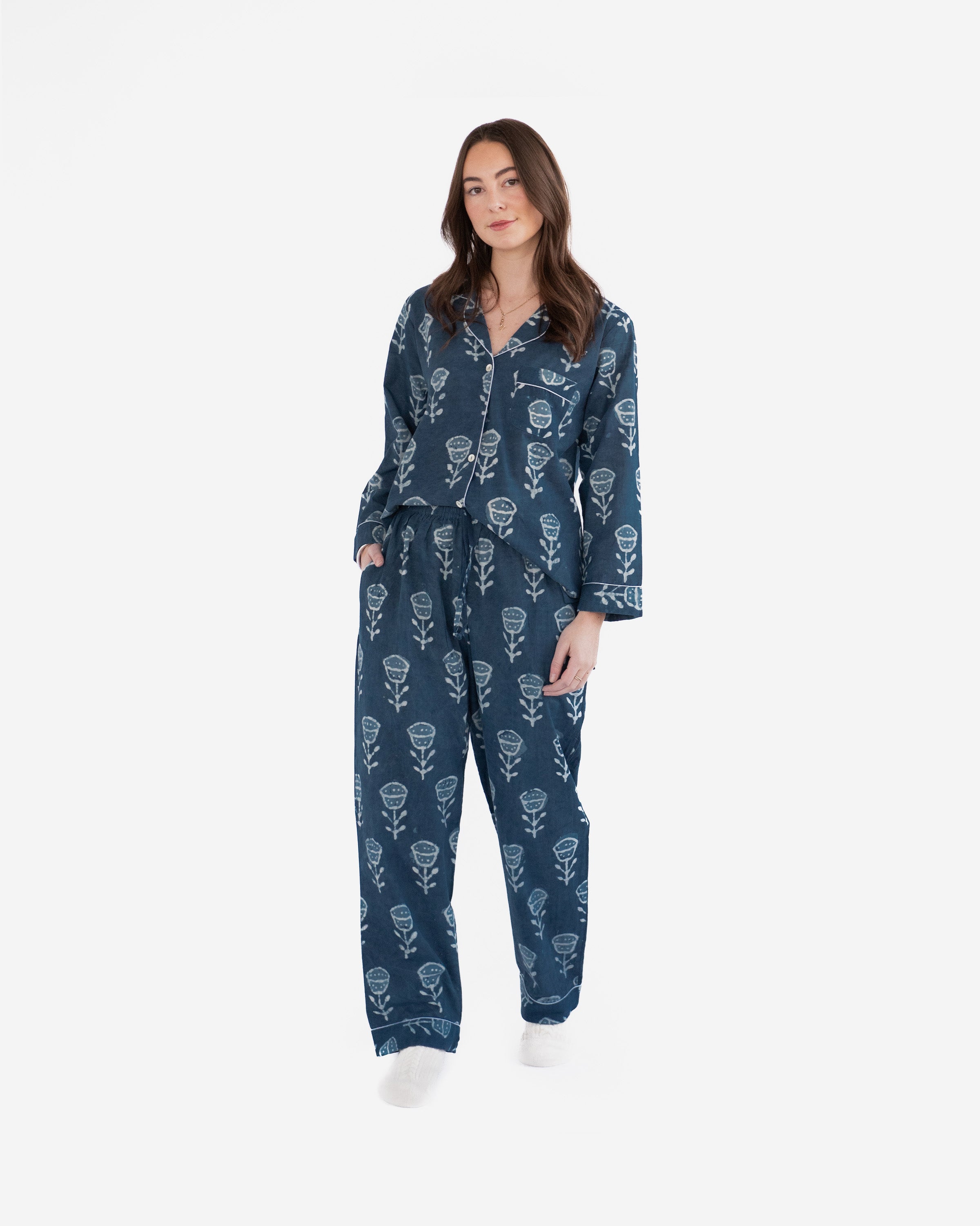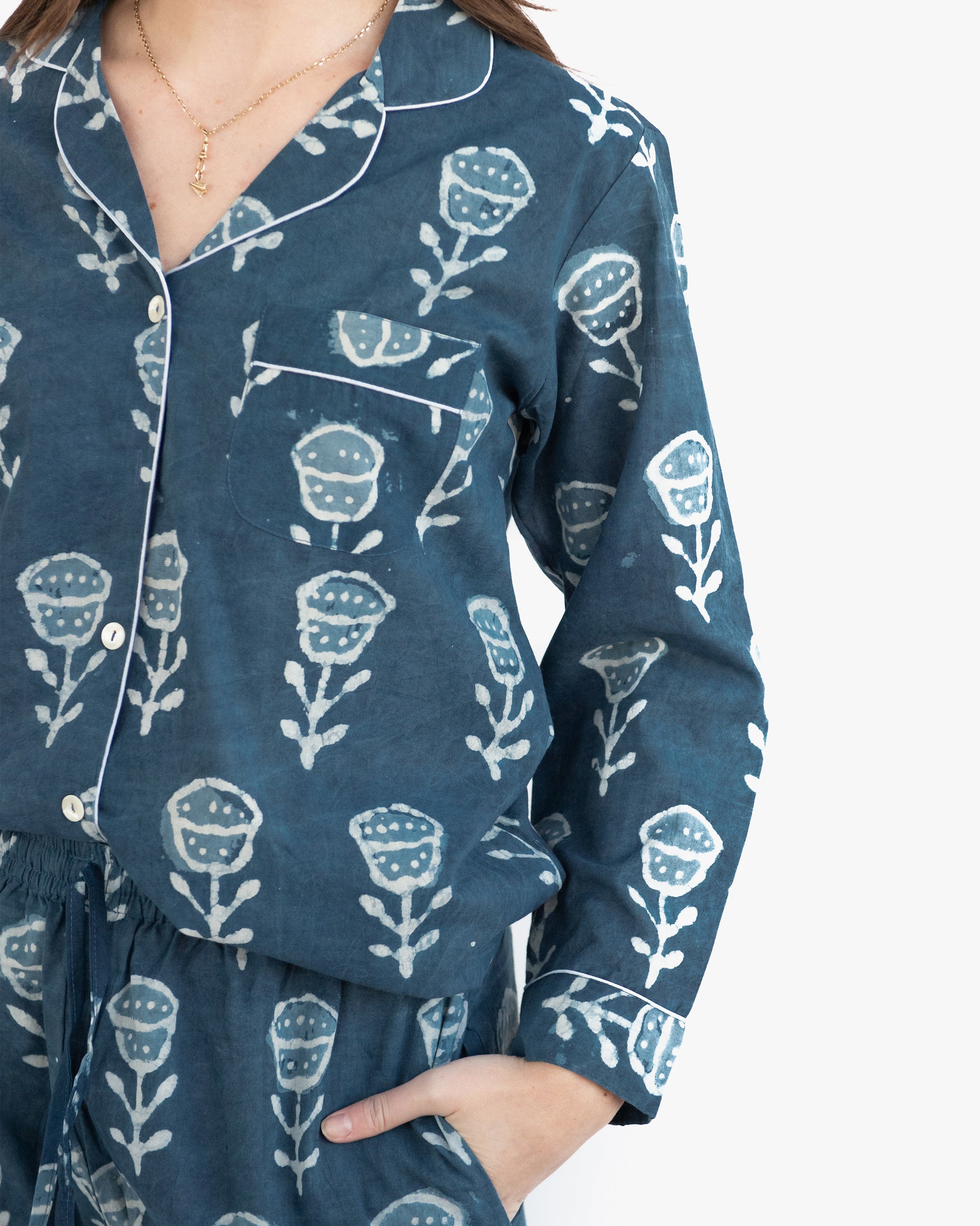 Blue Batik Long PJ Set