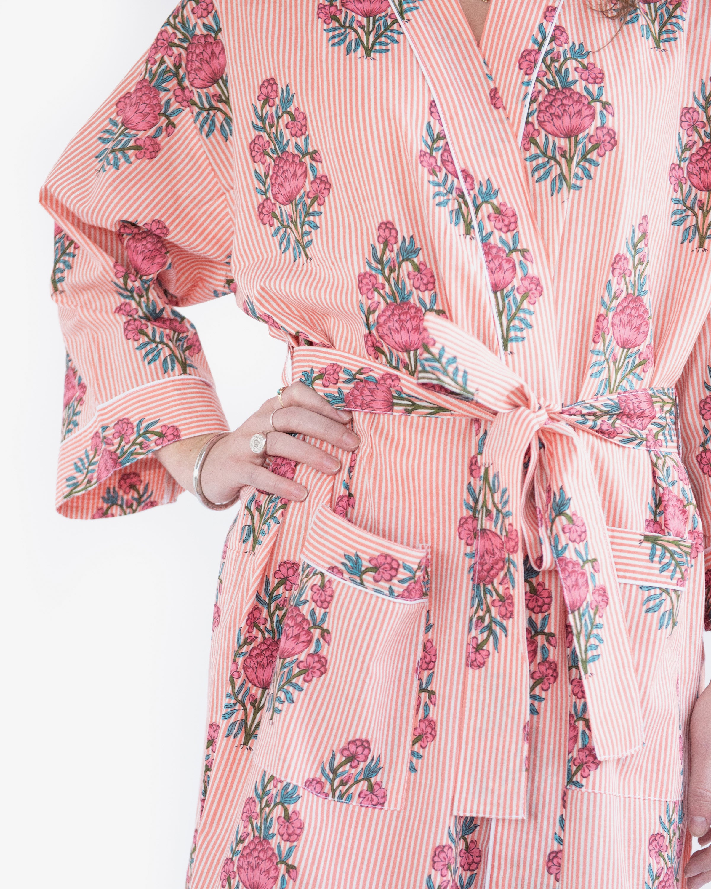 Pretty, stylish and oh so chic! Matches our Striped Coral PJ set perfectly.